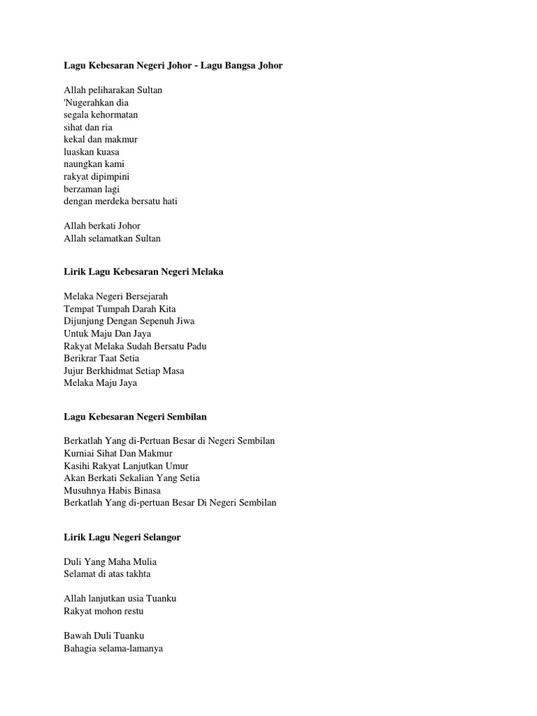 Lirik Lagu Negeri Sembilan Lagu Negeri. Kasihi rakyat lanjutkan umur. Httpsinvolcocl5wru3Negeri Sembilan Malay pronunciation.